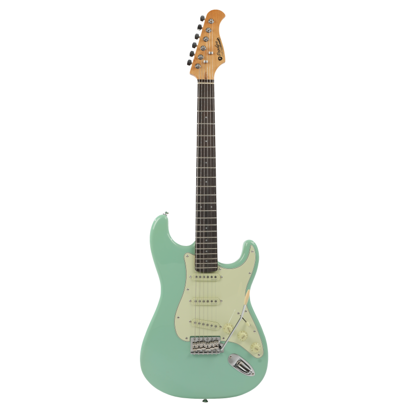 Avec un corps en tilleul de bonne densité, un manche en érable vernis vintage, une touche en érable pour plus de brillance et de claquant, et surtout... un radius 9,5 pouces identique à celui des plus grands modèles américains.